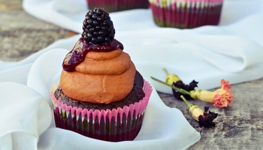 - Decorate the cupcakes with the chocolate cream, blackberry sauce, and fresh blackberries. These are decadent cupcakes, full of chocolate and very tasty. Enjoy!